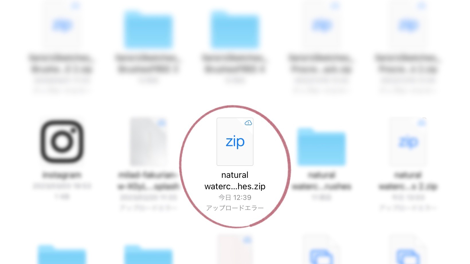 ダウンロード済みのファイル画面に移るので、natural watercolor brushes v2.zipを探してタップします。