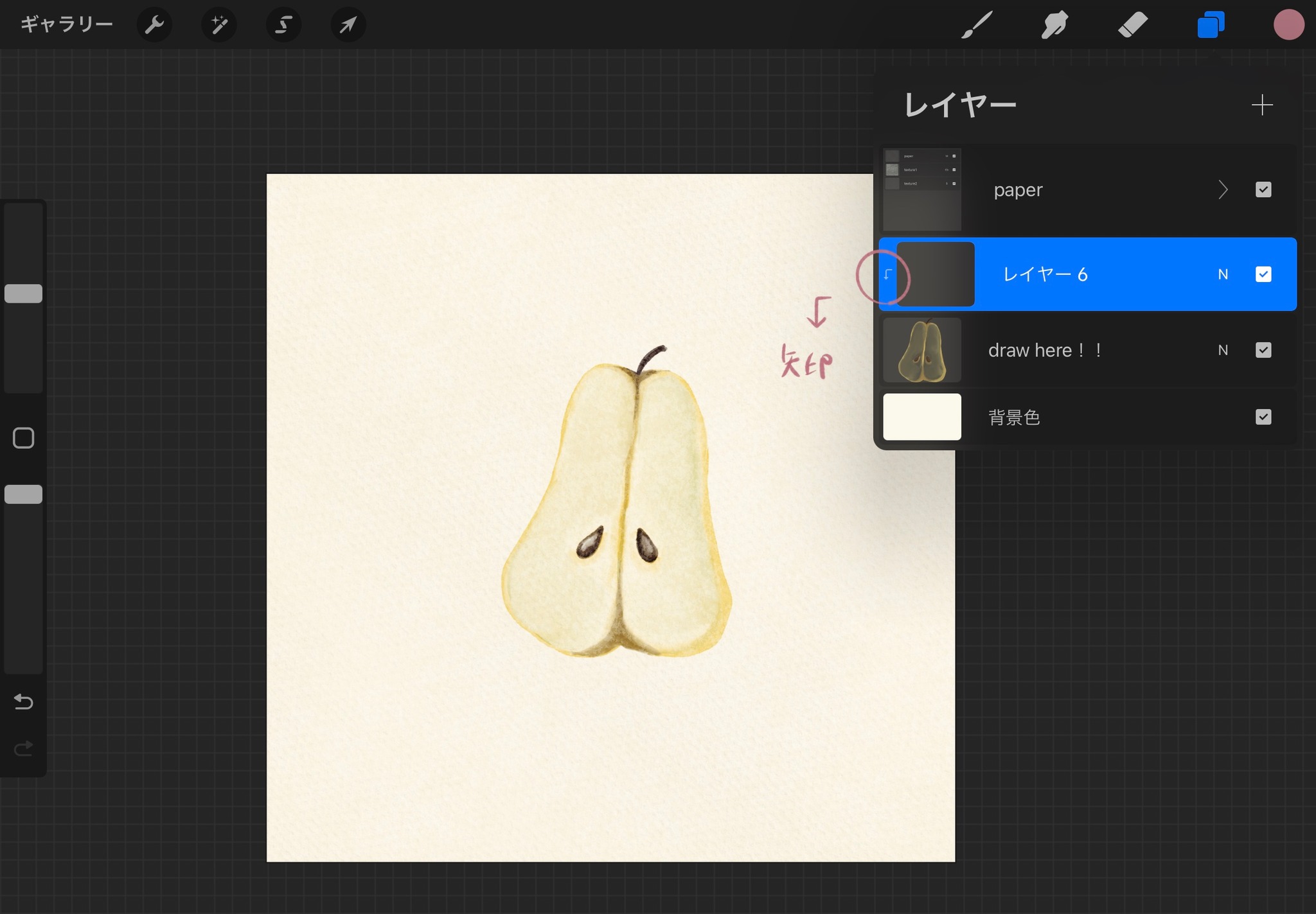 梨のレイヤーからはみ出ることがないので大胆に描いていきます。